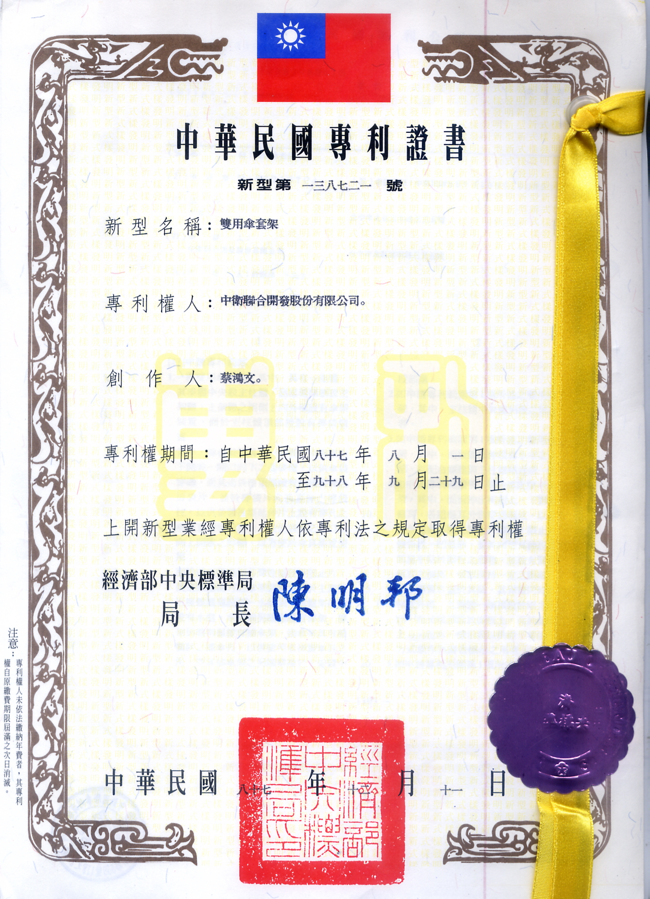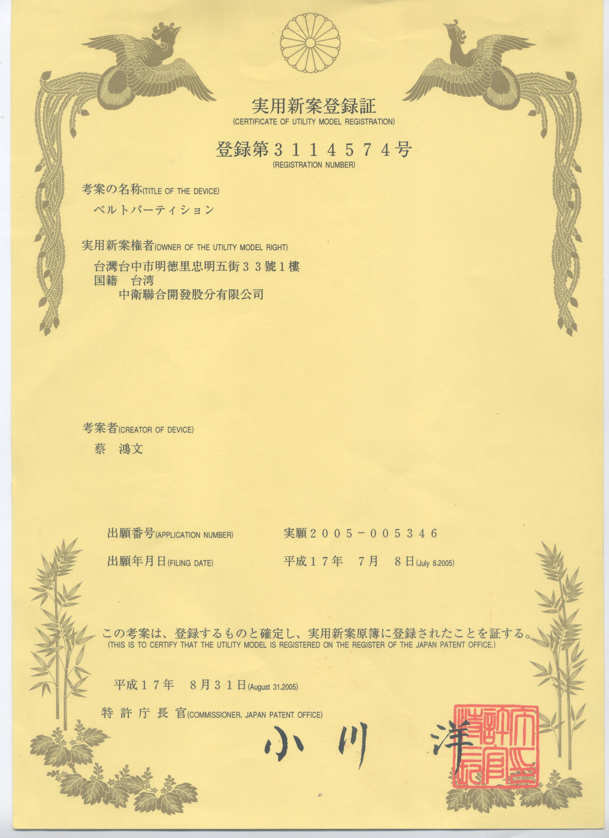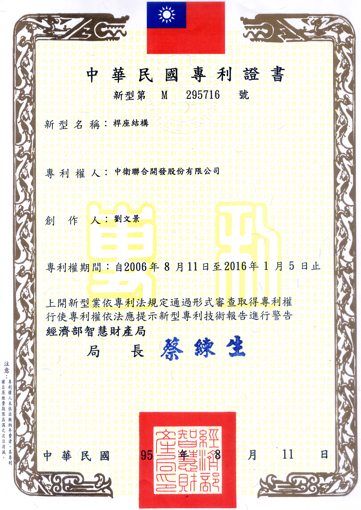 本公司自行研發多項商品,並在數多國家皆申請專利,確保商品獨創設計不被仿冒,為當地銷售創造競爭優勢。