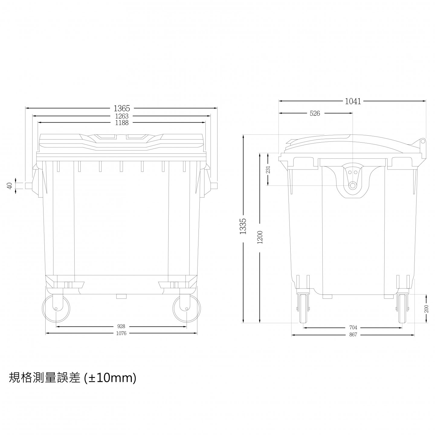 長握把內置金屬管強化,可有效防止垃圾車夾起時斷裂,耐用度提升!