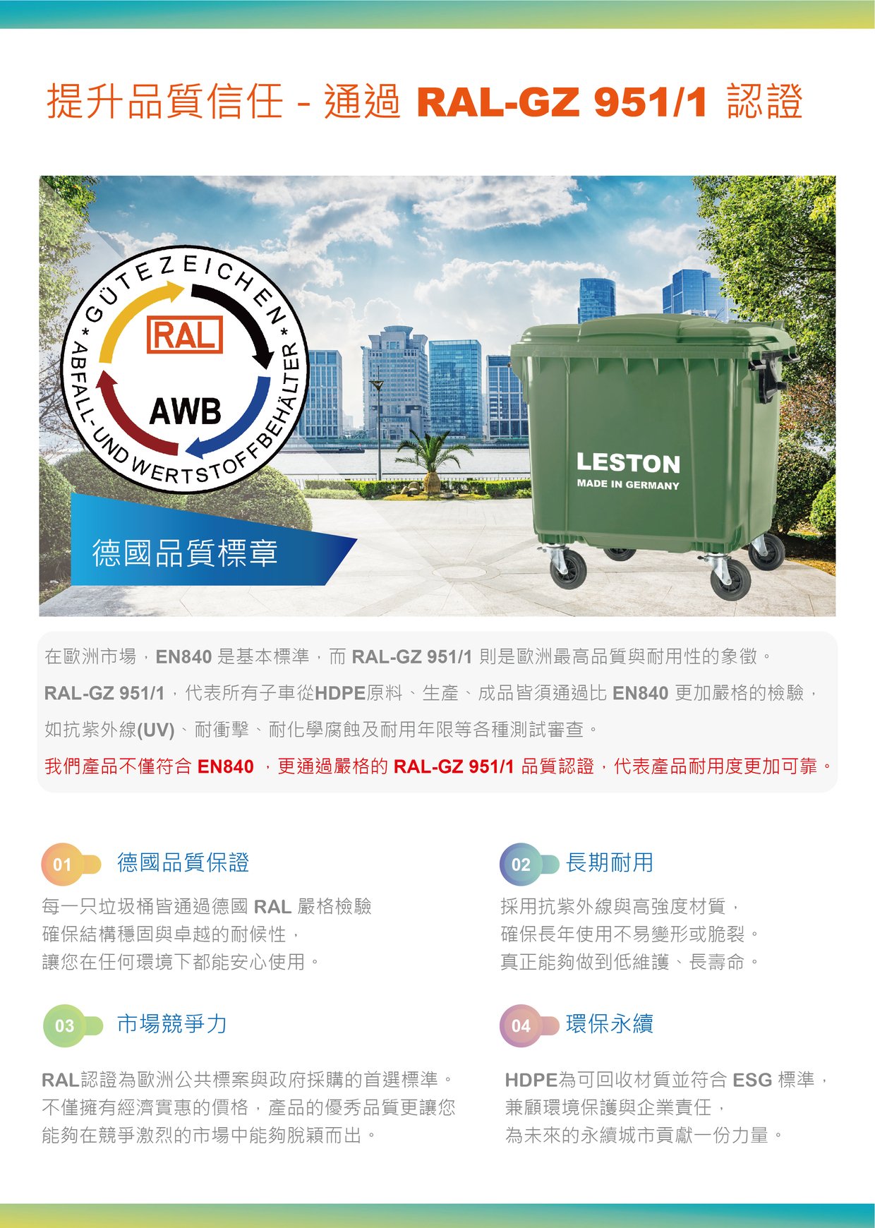 四輪大型垃圾子車 EN840國際認證 RAL-GZ 951/1德國權威認證